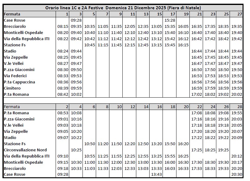 Domenica 21 Dicembre 2025 in occasione della “Fiera di Natale” e della partita di calcio “Ascoli – Campobasso”, dalle ore 05:00 alle ore 24:00, i servizi urbani ed extraurbani subiranno le seguenti variazioni: